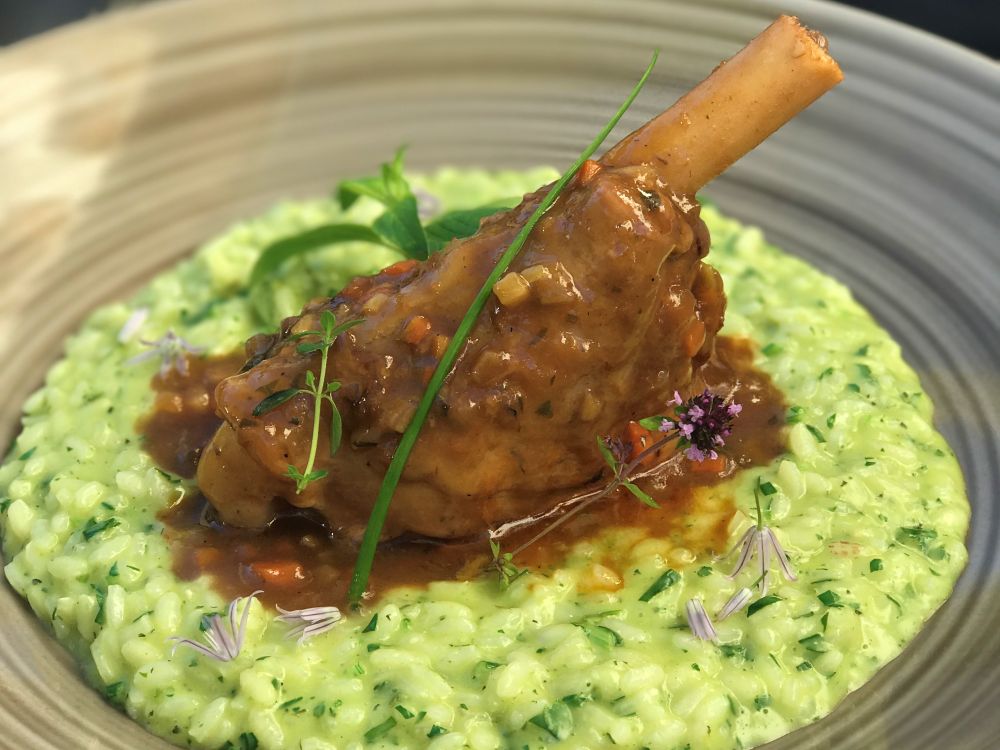 lamb shank resotto with wild flowers