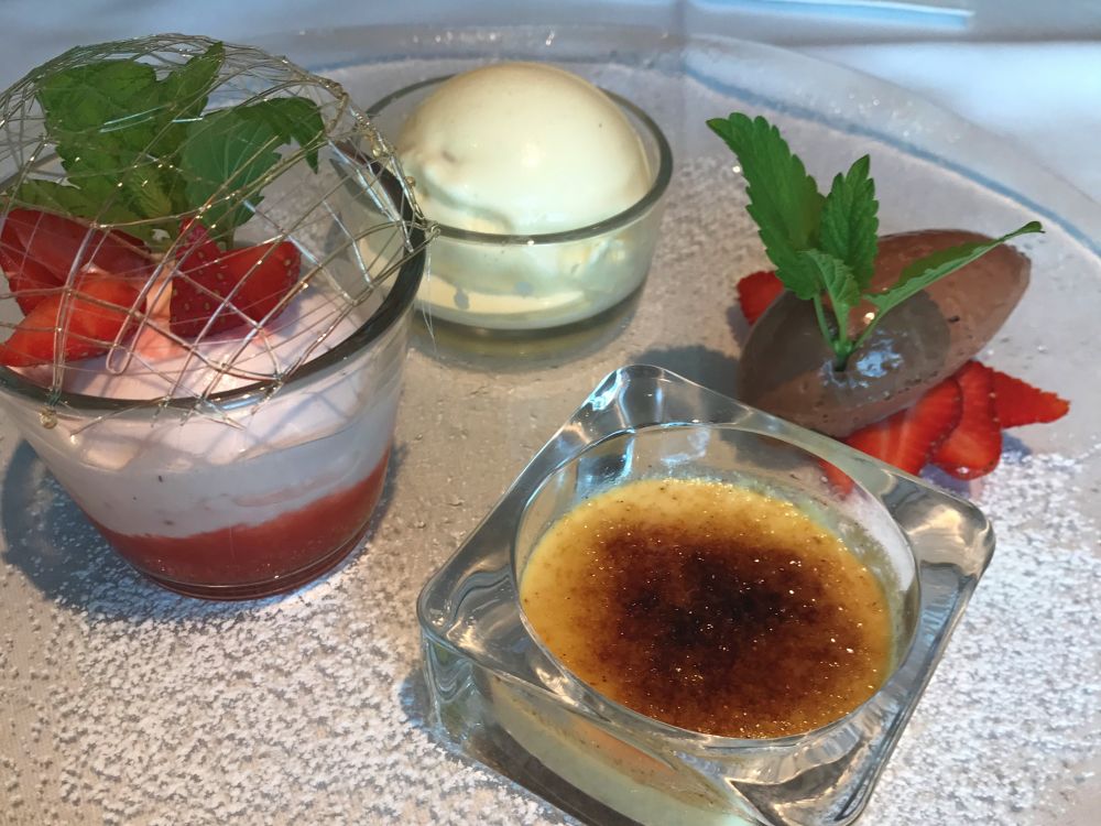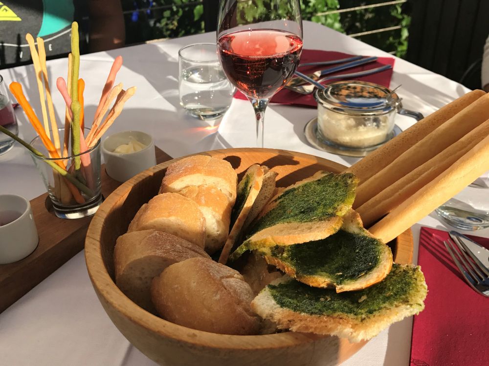 老公早早的订了在pitzock饭店的位置,开车过去二十分钟就到了。饭店布置清新亮丽,显得简洁现代又十分舒适。老板娘把我们安排在后院的平台上。夕阳下微风徐徐,看着木头围栏外绿绿的草坪和草坪上几头黑白奶牛,心里真是非常轻松。 这家饭店以slow cook 慢饮食风格和采用当地食材而出名。一切食材都是在当地新鲜摘采慢制而成。餐前小点心就叫人爱不释手,大概有七八种味道质地不同的面包。我们最喜欢的是那一条条绿色的粉色的黄色的细细的breadsticks,出奇的好吃。他家餐馆菜谱根据季节食材的情况,经常更变。我们每人按自己的喜好点了炖羊腿加野花烩饭, 手工意大利奶酪饺子, 当天运来的新鲜海蚌,还有最检验意大利厨师水准的意大利肉酱面。每道菜都美味无比,各有秋千,饭后甜点组合也是精致又好吃。山里的夜晚还是有些凉凉的,老板娘把我们挪到屋里。不知道是food high还是sugar high, 我们几个开始为一点点小事傻笑。厨师亲自为我们拿来了sweet ending,老板娘在我们临出门前又赠送甜品后的甜酒,并且建议我们一仰脖干了,好好睡一觉。我们恭敬不如从命,乖乖的干了。pitzock - 多么美好的邂遇!我把他家的网站贴在这儿。要是你正好在那儿旅行,去体会下: http://www.pitzock.com/