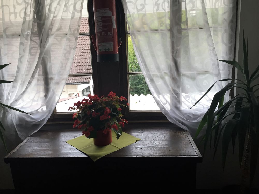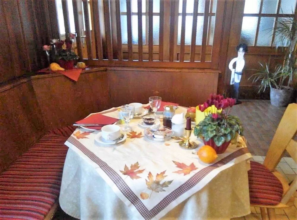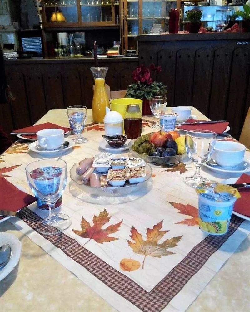 旅馆老板娘是个典型的德国女人,人高马大而不善言谈。第二天一早,没等我们下楼早已把早餐的桌子布置好了。冷饮,咖啡,水果,酸奶,面包,肉,奶酪,香肠,各种果酱,又美餐一顿。