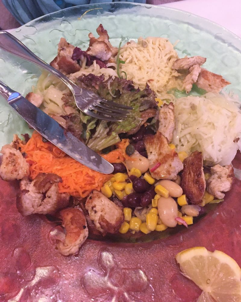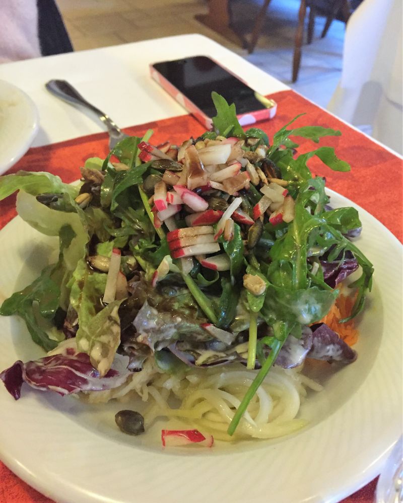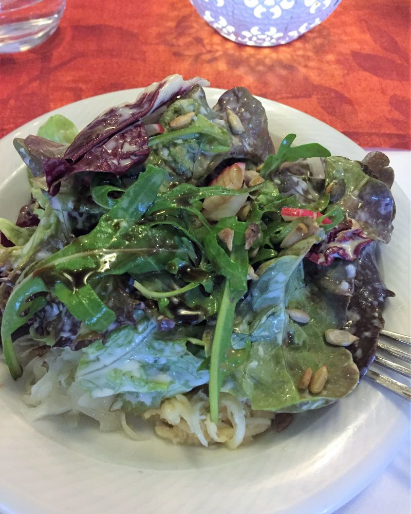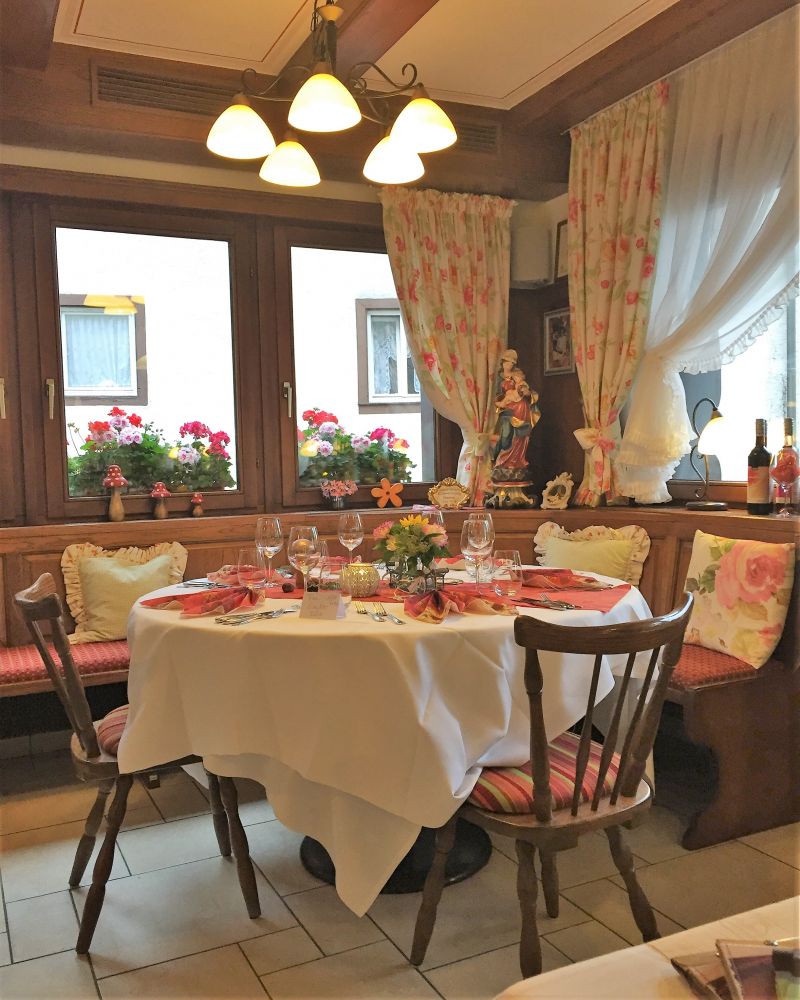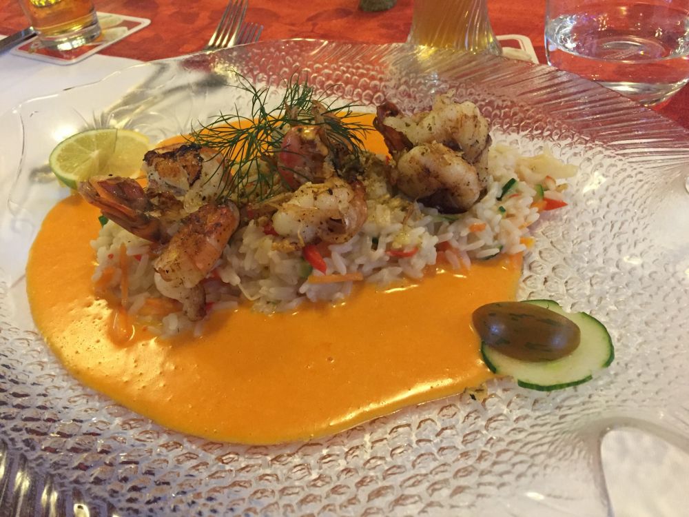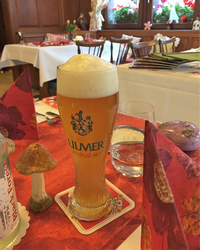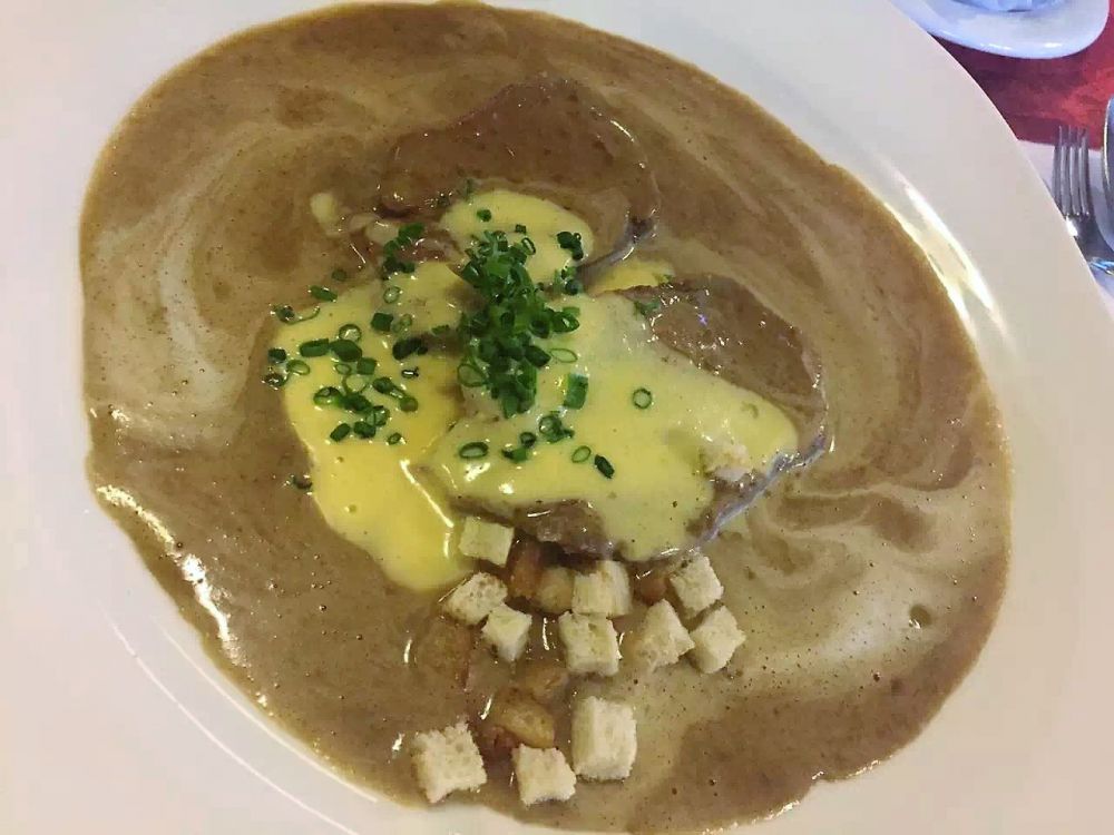 如果说布置叫人惊艳的话,每道菜更都是出奇的好吃,不管是开胃的色拉,龙虾汁儿烤虾米饭还是主菜:色拉各式烤肉,烤猪排,白酒烤鱼还是红酒炖牛舌。颇为遗憾的是甜点没有黑森林蛋糕。不过每道菜的份量远远超过我们所能承受的了。边上的牛高马大的德国人吃完晚餐又点了巨大冰激凌和巨大杯啤酒,看得我们直乍舌。