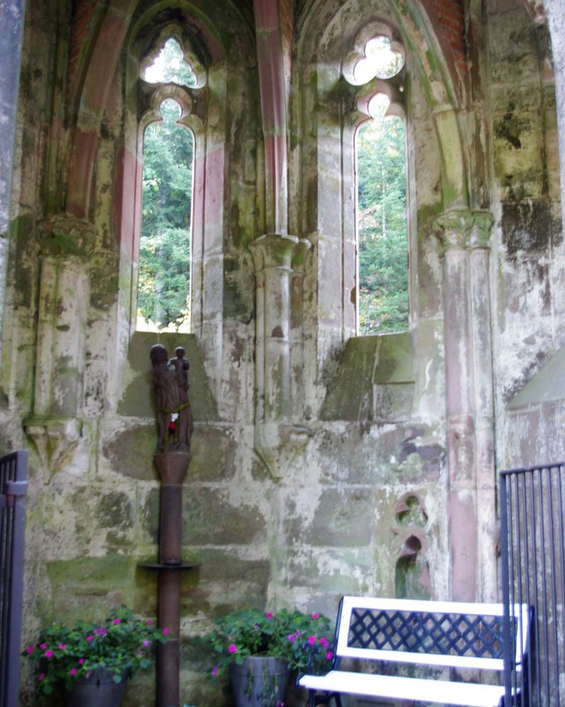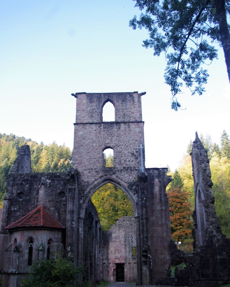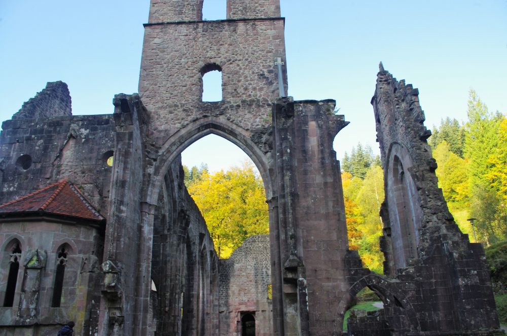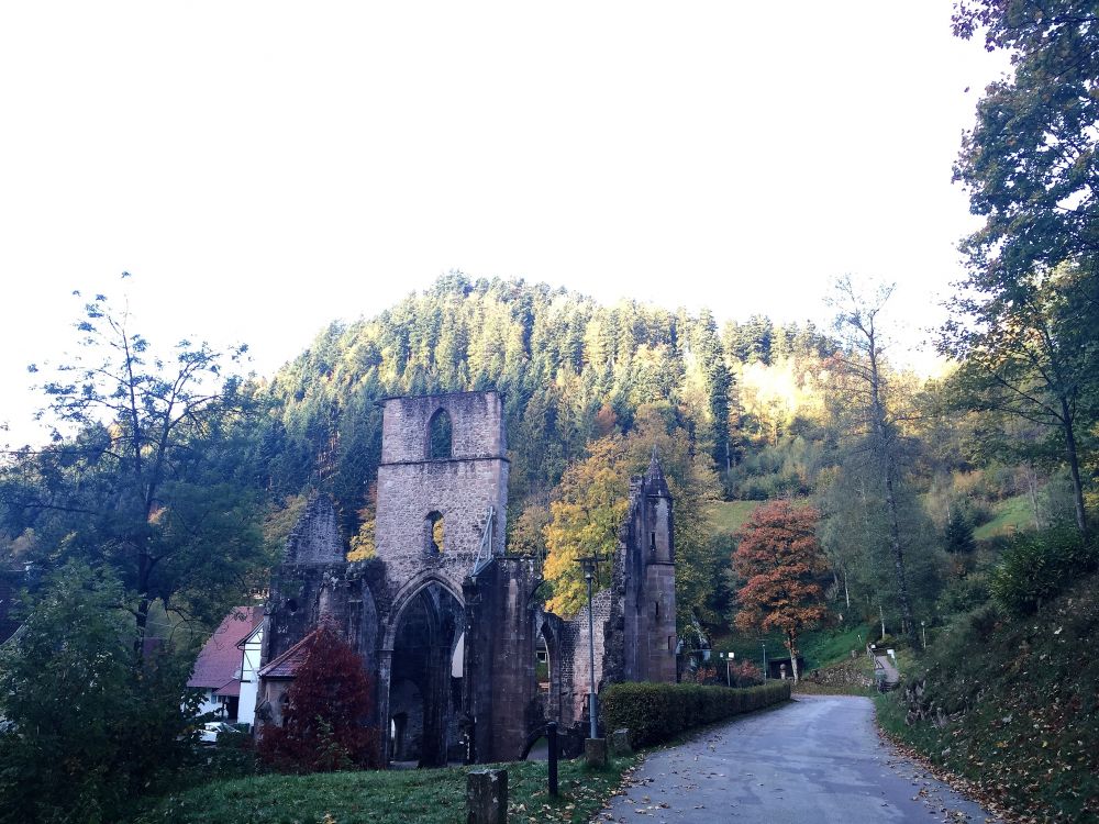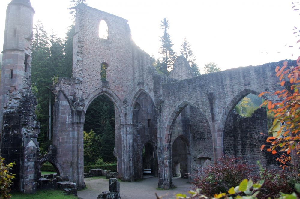隐藏在森林里还有建于十一世纪的修道院因为火灾留下的残垣断壁。小溪在边上静静的流淌,周围秋林寂静,残留的建筑依然有着优雅的线条给人无限的遐想。。。