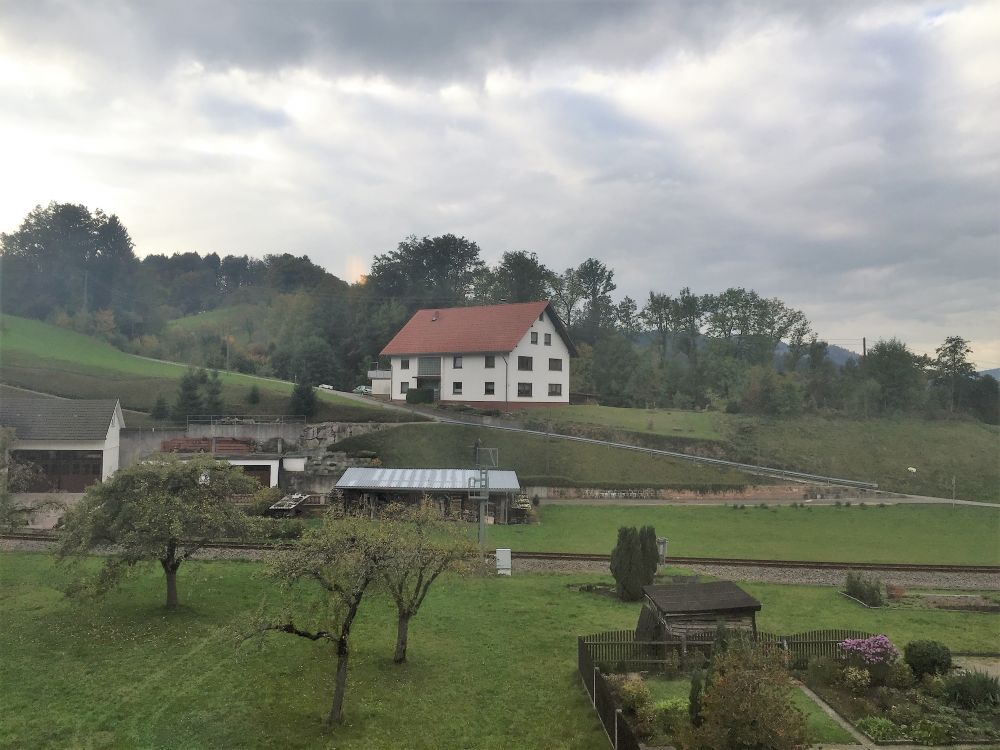 慕尼黑浮光掠影之后前往黑森林小镇Oppenau。一开始特别开心,在德国没有限速的高速公路上勇往直前相当快意,而且路两边的独特风光也令人陶醉。时而秋林如火如荼,时而是一眼望不到头的针叶林(大多数是冷杉和云杉)笔直耸立,树叶浓绿浓绿的, 几近黑色,终于明白为什么叫Black Forest了。路边还时不时地出现成片成片的油菜花田和散漫的羊群,让我们恨不得每隔几分钟就停下车来照相。