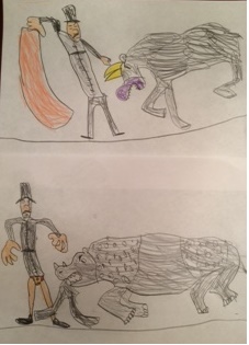 我儿子画的斗牛士,对不起,有不雅画面:(