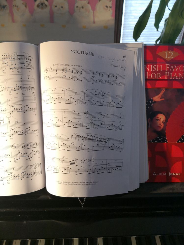 女儿送我一本肖邦的曲谱做生日礼物,书中收集了所有肖邦的前奏曲,夜曲和华尔兹。我最近正好对肖邦的升C小调夜曲(NocturneinC#Minor,No.20Op.posth)着迷,就在书里找。结果发现很奇怪这一首在书里只标了年份,没有编号。(照片里的编号是我加上的,这样以后容易辨认)出于好奇,周末在网上搜索了一番,意外读到了一些这首夜曲背后很多有意思的故事。肖邦临终前要求把他[