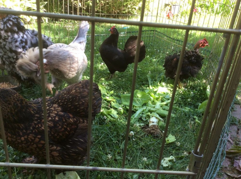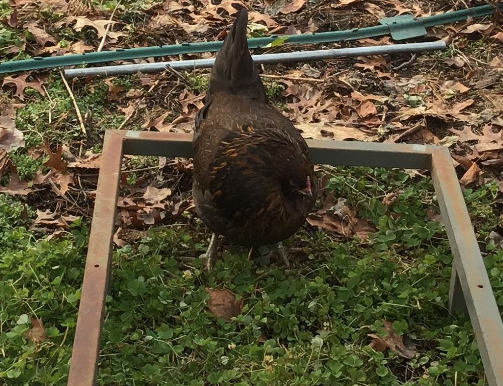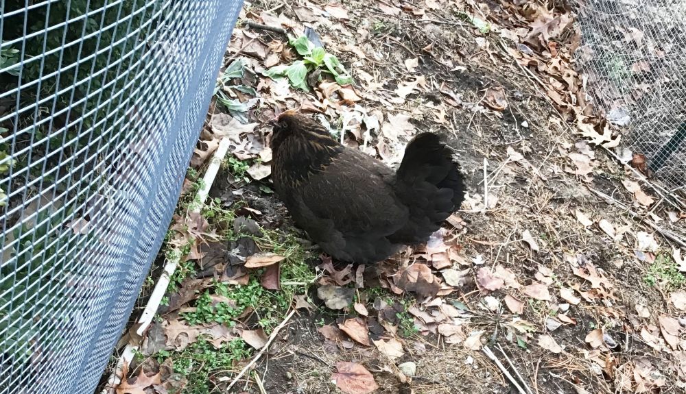 一个胡子鸡生了莫名其妙的病,不吃不喝,好像精神上受了刺激。我把她放在菜园里静养,好不受其他母鸡干扰。