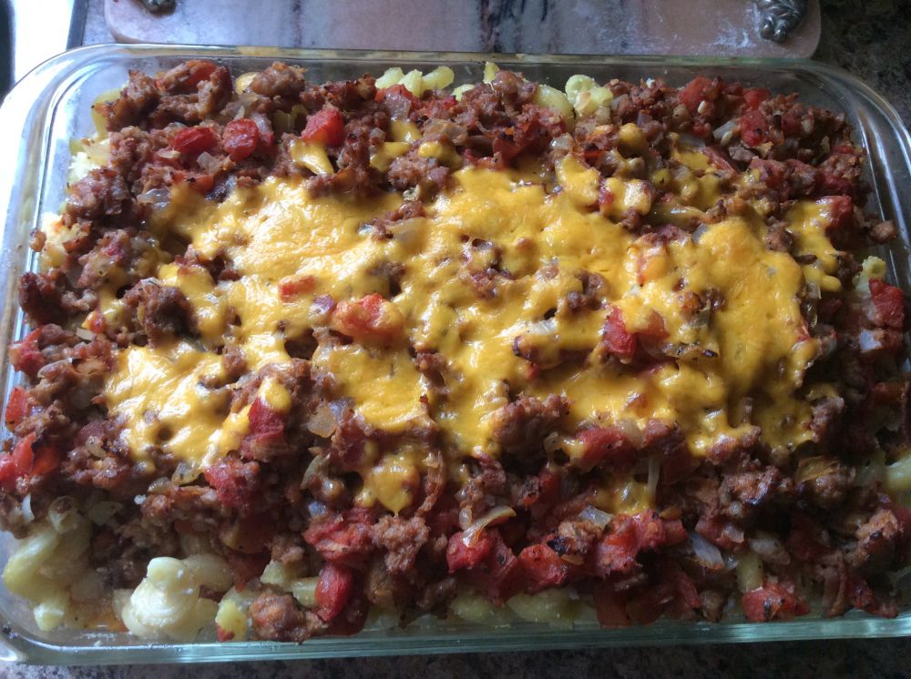 Baked macaroni或baked ziti: 这种食物经常出现在聚餐会(potluck)中,每家或各人带一份餐来聚。这一大盘可以满足大量食客的胃口。