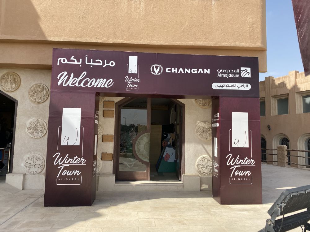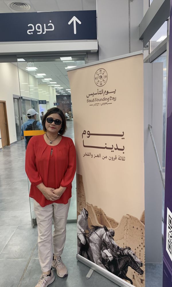 沙特建国日Founding Day醒目地标在宣传旗上呢,出门就是沙特啦。 坐邮轮的交通车去达曼市中心。