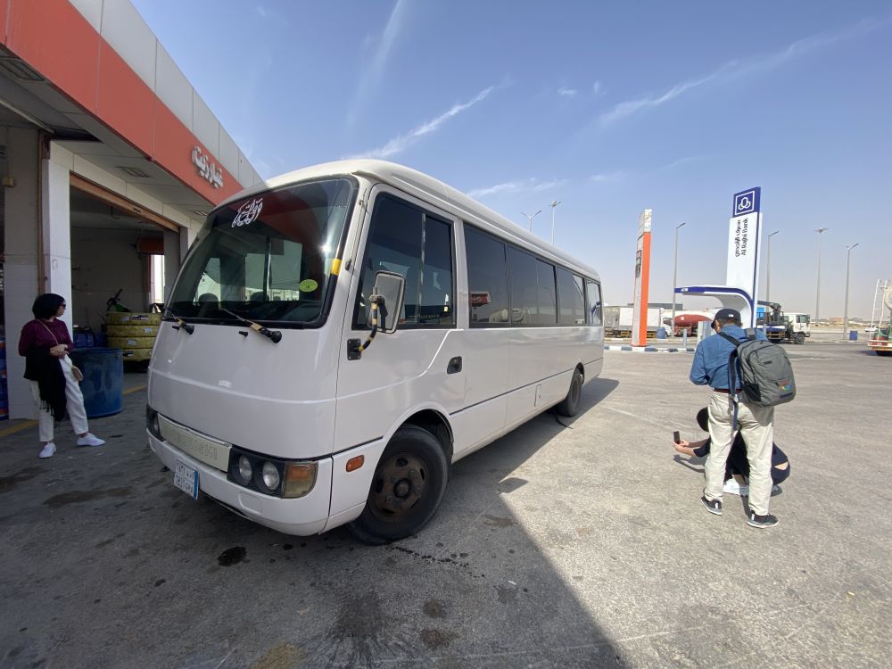回到达曼市中心,坐上邮轮的交通大巴,遇到认真检查护照身份的沙特边境警察。