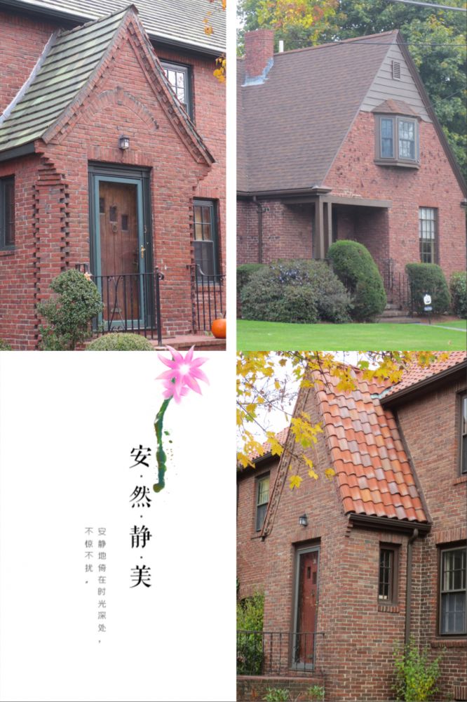 毎天都要路过这样的小区,有一片这样的红砖屋。毎家的外观都与邻居稍有些不同:或红瓦红门,或綠瓦绿门,或白窗白车库,或烟囱拨地而起,或窗台伸出数尺。这些住房都是建在和平年代,一战后和二战前的间隙。能看得出来,那时这里的人们都沉浸在安居乐业的生活中。虽然这些建筑己有近百年的岁月,但当时的建筑质量和一代又一代人的维护,它们看起来还是那么耐看:简单但不简陋,质朴但有质量,品味但不豪华,即经典还精致。每每看到它们的感觉就是,浓浓的书卷味和宁静,老时光的温馨和祥和。