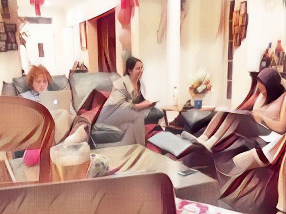饭后女儿说可以在家里再呆一会,坐沙发写作业。领导体察民情, 小民普大喜奔吧。