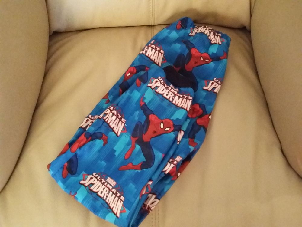临近圣诞节的一天,妈妈带宝宝去商场购物。因为上一次原打算给宝宝做裤子的布料被爸爸用来罩大电脑了,妈妈想着最好能碰上宝宝喜欢的图案的布料。那天很幸运,宝宝找到两款Spider-Man的布料,一块布料是以天蓝色为主,里面的Spider-Man双手伸展,做着跳跃动作。另一块是灰色基调,里面的Spider-Man是俯冲和踢腿的动作。宝宝欢欣雀跃地捧着两块布料回家。宝宝见到爸爸兴奋地说:“爸爸爸爸,妈妈帮我买到了Spider-Man的布。”爸爸看着宝宝这么开心,把布料接过来用手摸了一下,说:“哦,是挺好看的。不知道穿着舒不舒服。”宝宝呵呵笑着说:“肯定舒服。”