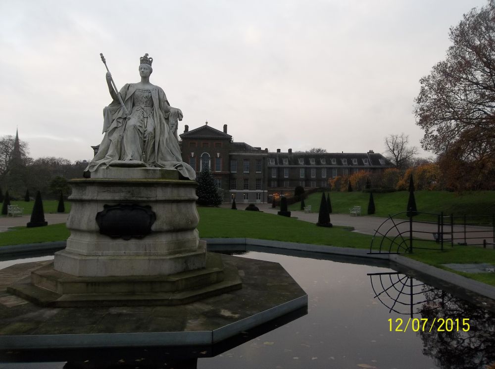 威廉王子和凯特王妃住的肯辛顿宫,位于伦敦西面的肯辛顿公园。该宫殿以及边上的下沉花园(SUNKEN GARDEN)每天十点后对外开放。我去得太早。尽管栏杆很低,却也没有勇气翻过去到里面看看。跟门卫说我是习近平主席的好朋友,麻烦他向王子通报一下。但门卫说王子估计还没起床,让我等到十点再来。只好作罢。
