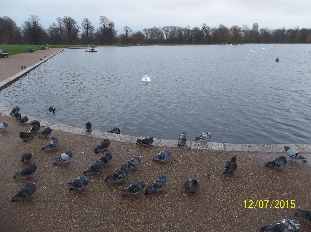 肯辛顿公园里的圆形池塘。里面有好多天鹅和各色水鸟飞禽,当然也少不了讨厌的鸽子。