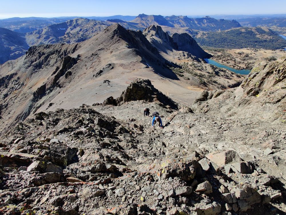 沿途的风景,有湖泊,山峰,森林,和其他的Serra Nevada 徒步路线没有什么惊异的不同,这里不浪费时间描述,但是最后一小段爬上山峰的过程真的令人惊心动魄。而且非常费力,还考验我们的"登山技术",和身体的柔韧性。