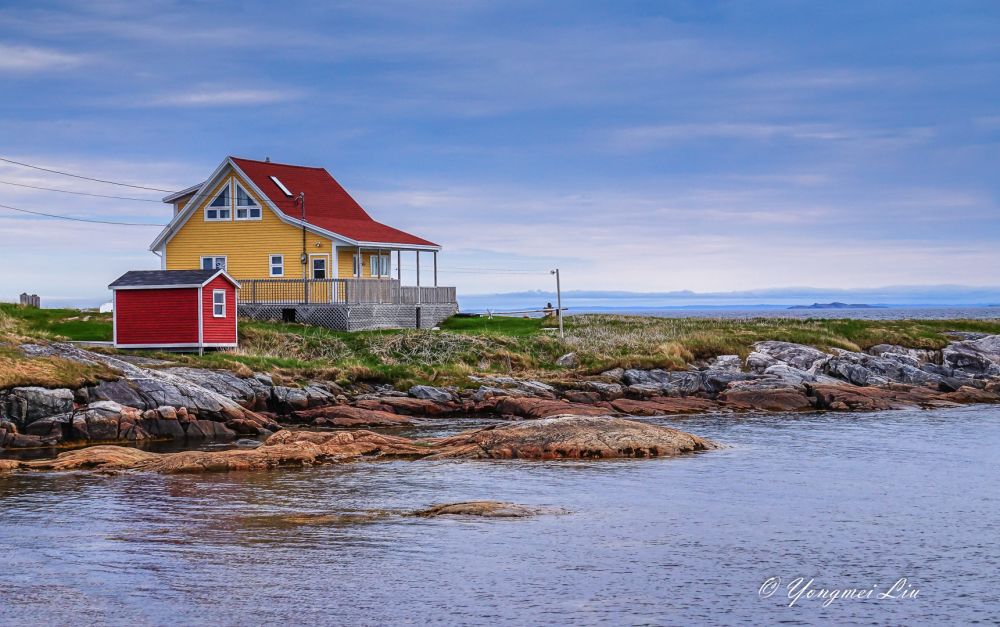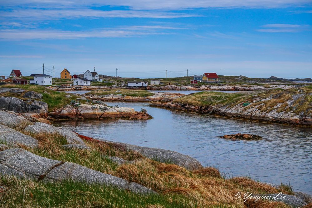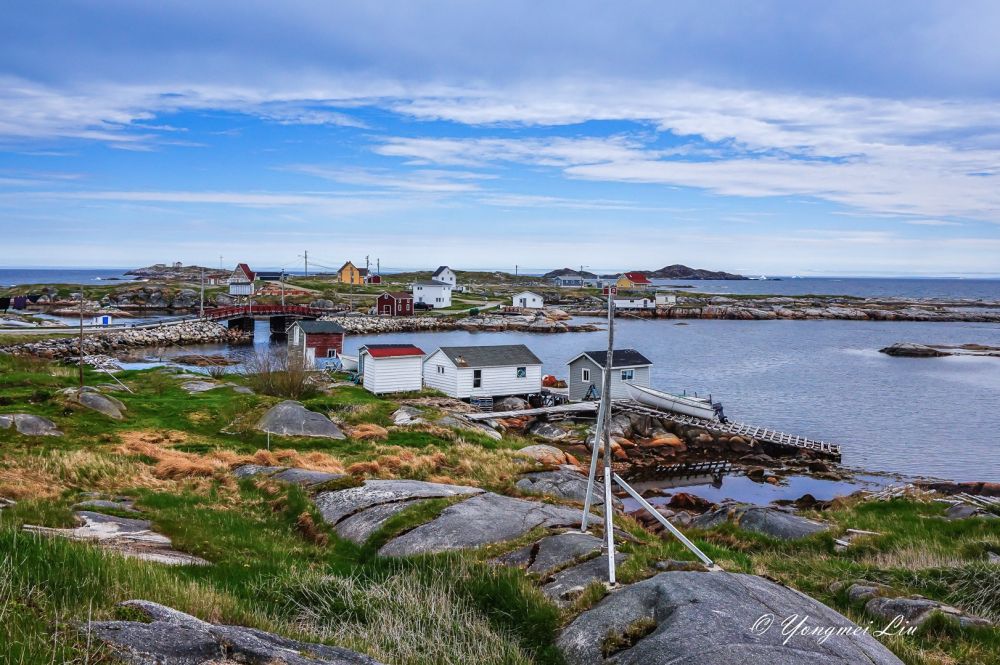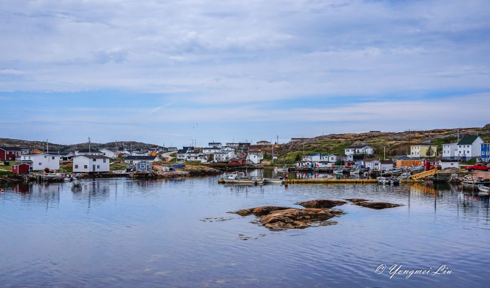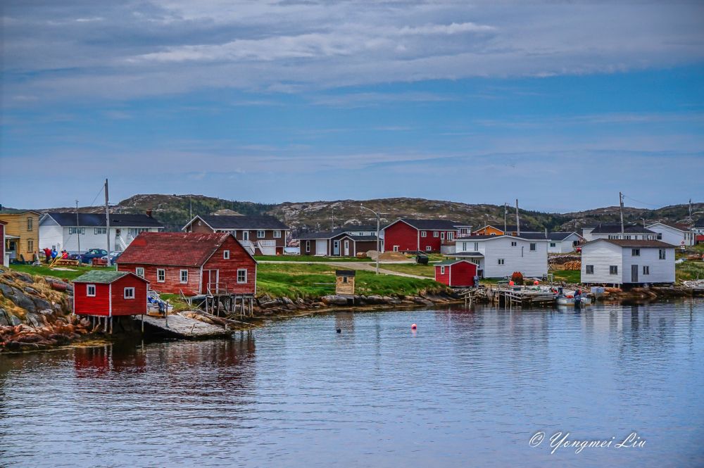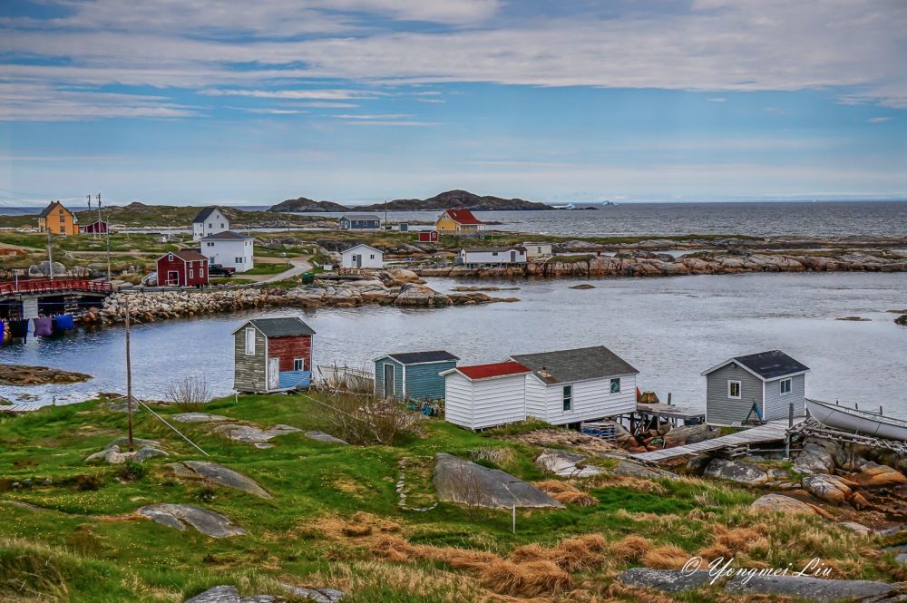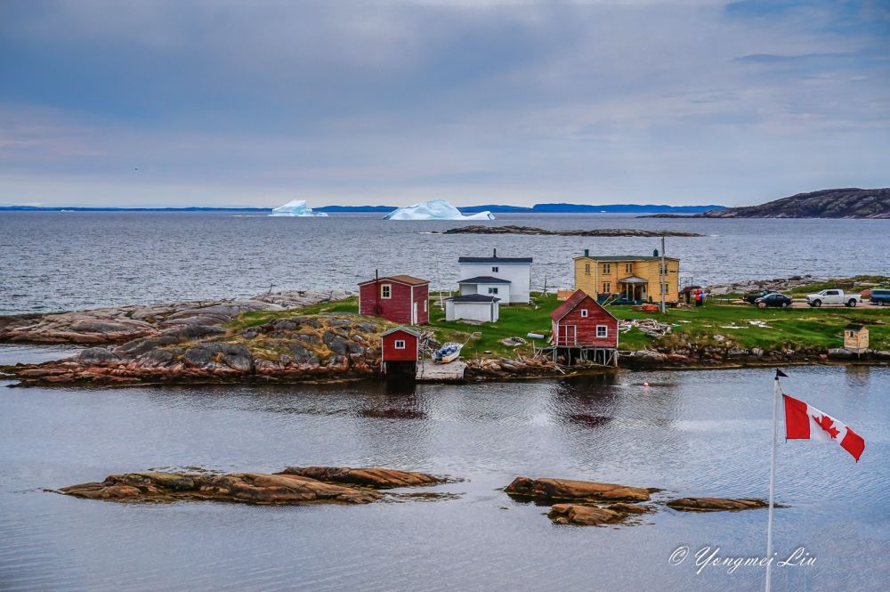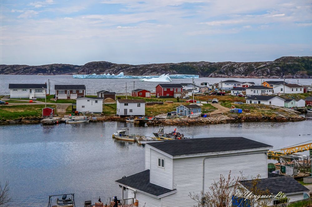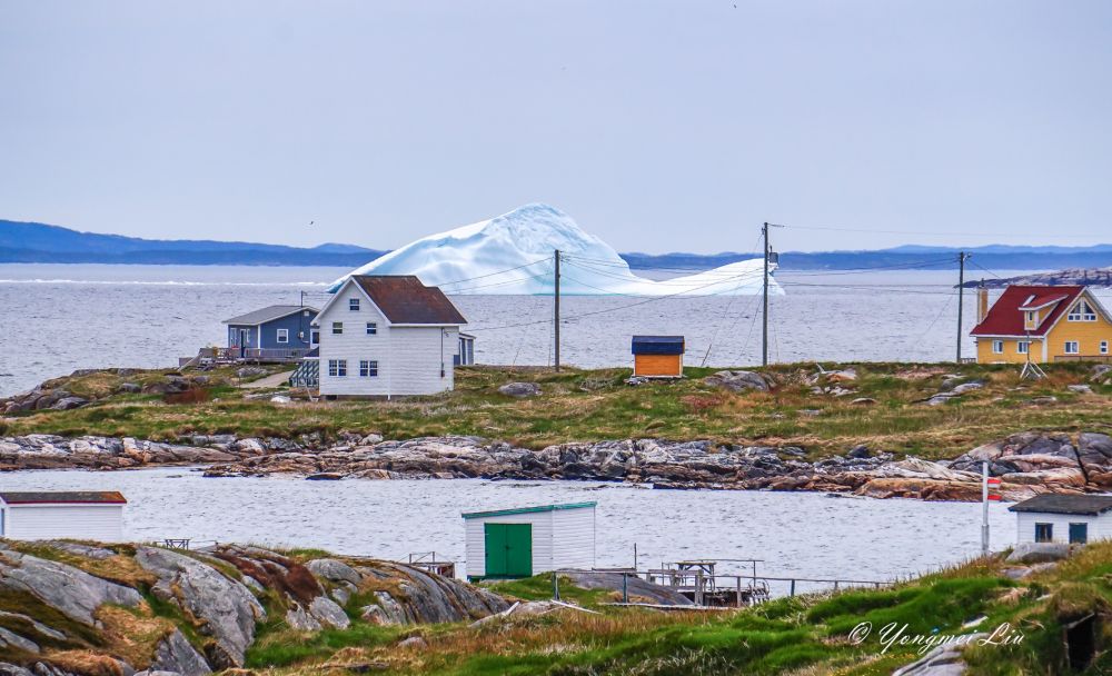 六月初去纽芬兰岛,肯定是打算看北方漂流下来的冰山的。这个时候,在圣约翰斯附近的海面已经看不到什么冰山了。最推荐的看冰山的地方叫:Twillingate, 但离圣约翰斯比较远,在圣约翰斯北部开车要五个多小时。我们原计划去Bonavista看冰山的,不过在住的旅馆里看了一幅画,我被深深的吸引了,画上的地方就是Greenspond(格林斯庞德),是个小岛。于是就把行程改了改,把Greenspond给挤了进去,结果真是不虚此行,不仅看到了壮观的冰山,这个小渔村本身就是一道靓丽的风景线。还幸好改了行程,第二天到了Bonavista 才发现,那里的冰山很少。