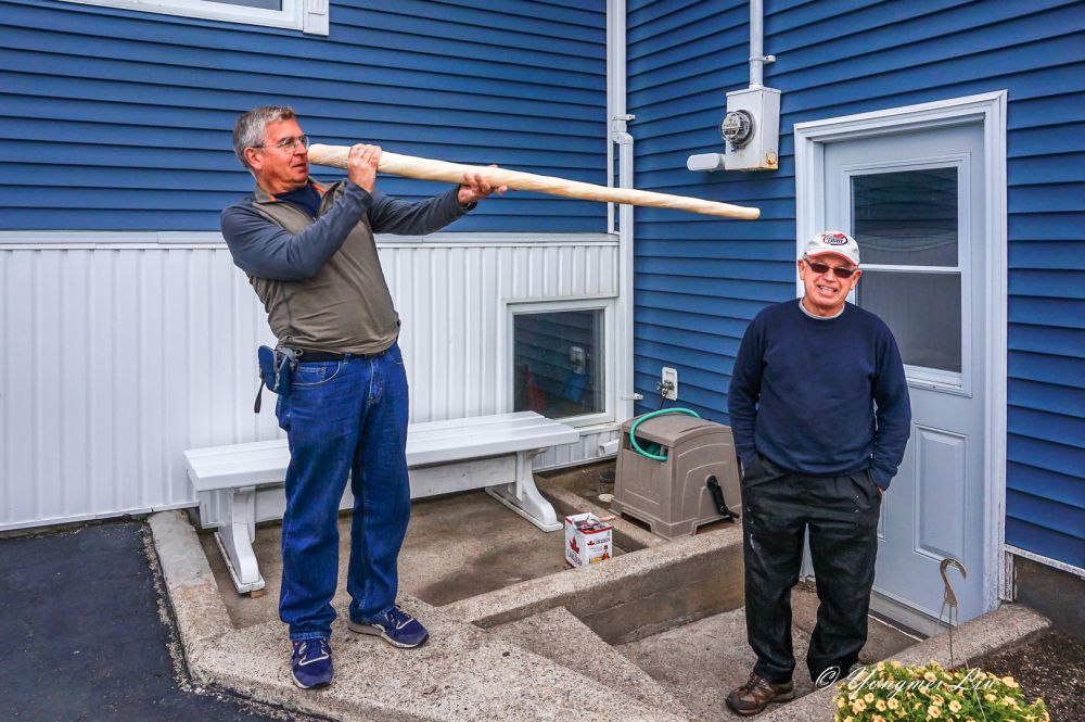 右边的这个老人以前也是安省居民,退休后和他太太搬到这里。老麦拿的是老人收藏的独角鲸的角。