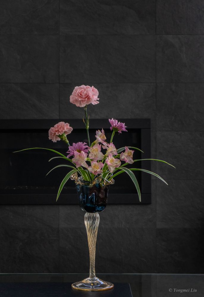 这个酒杯造型的摆设是白水晶做的,made in Italy, 在home sense买的,20加币。即可以做摆设又可以来插花,宝蓝色把粉色的花衬得格外娇嫩。