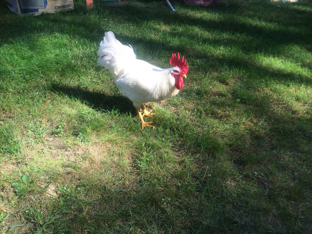 几年前从赵莊领养了几只小鸡,开始了听鸡叫捡鸡蛋吃鸡肉的日子。四尺见方的鸡房子,套一个八尺长的笼子。笼子连着一个双屉橱,橱后面的挡板拆掉通鸡笼,鸡想下蛋了就飞进去。我们从橱正面拉出抽屉取蛋。鸡白天在笼子里玩,夜里自动回房子里睡觉。我们每天晚上把门关上闩好,第二天一大早开门。哪天到家早的话,就把笼子门打开,放鸡出来满院子疯跑,找虫子吃[