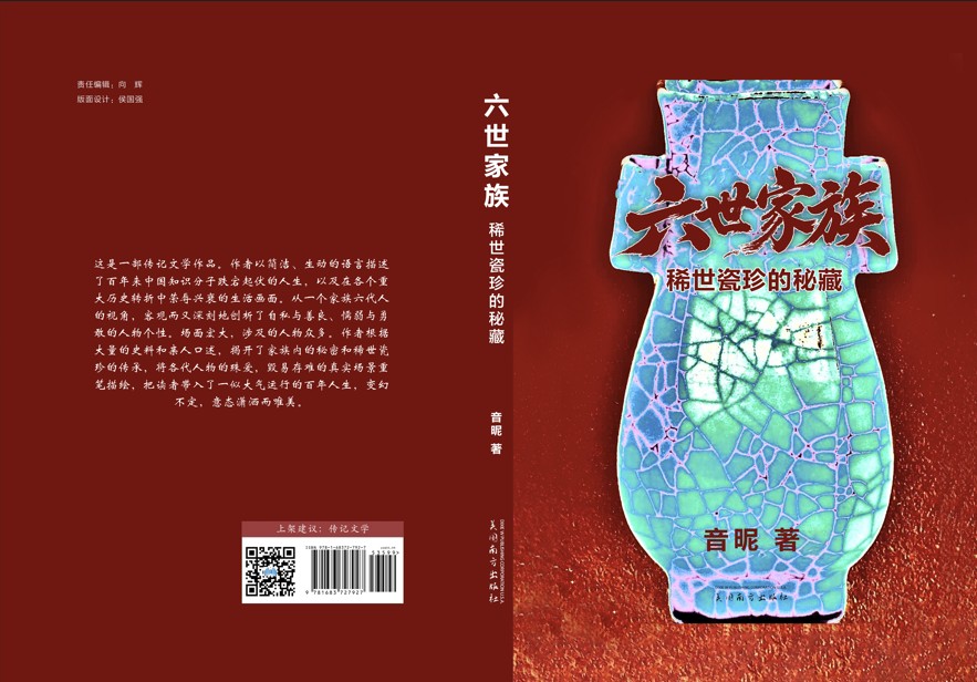 【作者简介】作者音昵生于北京,1985年获得中国政法大学法学士学位,留校任教,后获全额奖学金,赴加拿大麦吉尔大学(McGill University)深造,并留于蒙特利尔工作至今。于 2020 年,音昵在北美发表了第一部长篇小说《晨曦》。自八十年代起,音昵开始古董收藏,并已发表了七十多篇相关文章,造诣颇深。根据史料、亲人口述及十多年的梳理,音昵以家族六代人的生活经历为背景,将秘藏的 "南宋官窑八棱贯耳瓶" 的传承脉络捋清。该瓶是从晚清重臣李鸿章手中析出,在家族内流转,再由民国时期上海著名的律师、古籍善本藏家孙祖基(字:道始)递藏。一直伴随该瓷瓶长大的音昵,亲历了几十年的传承历史,并在此书《六世家族--稀世瓷珍的秘藏》中进行了生动而又详实地描述。