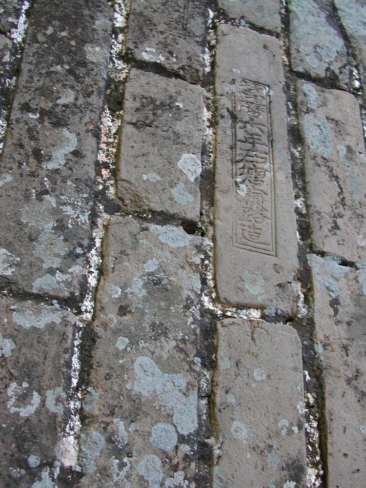 在他们的宅院里看到了几块“万历六年石塘宝路造”的城墙砖。