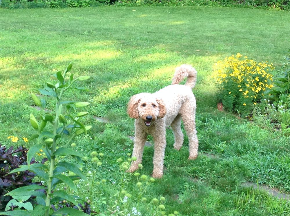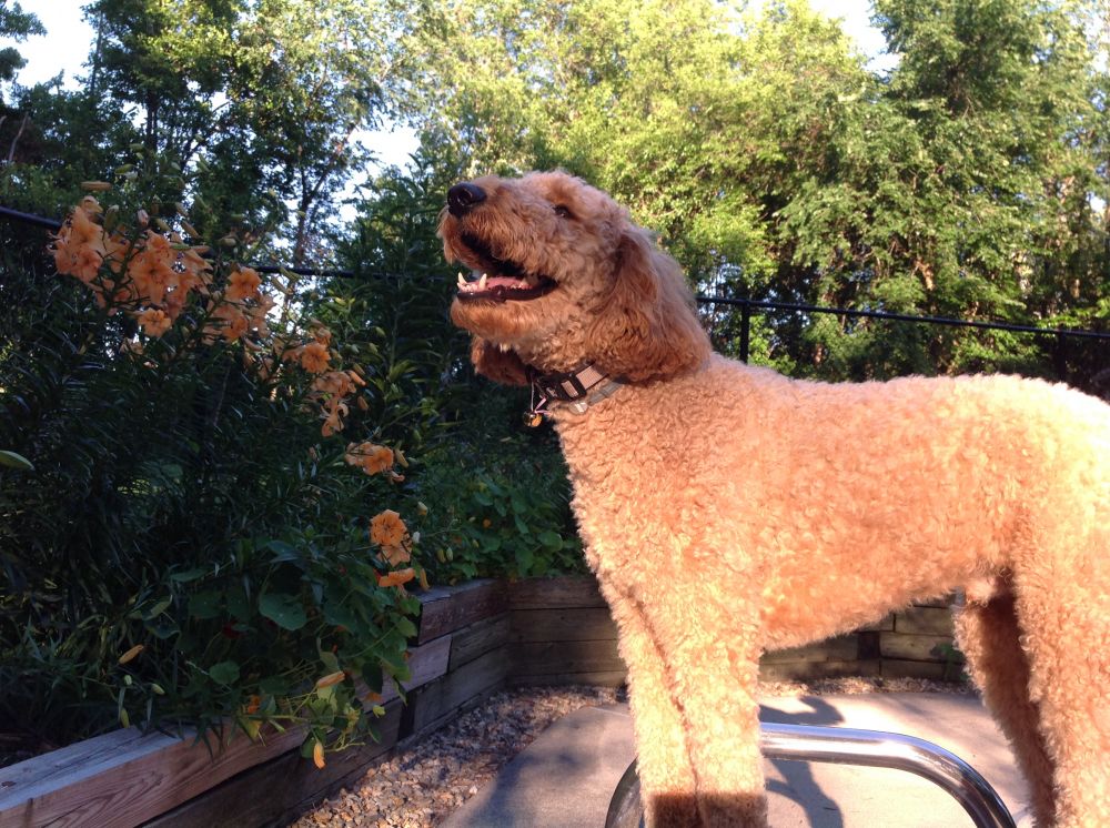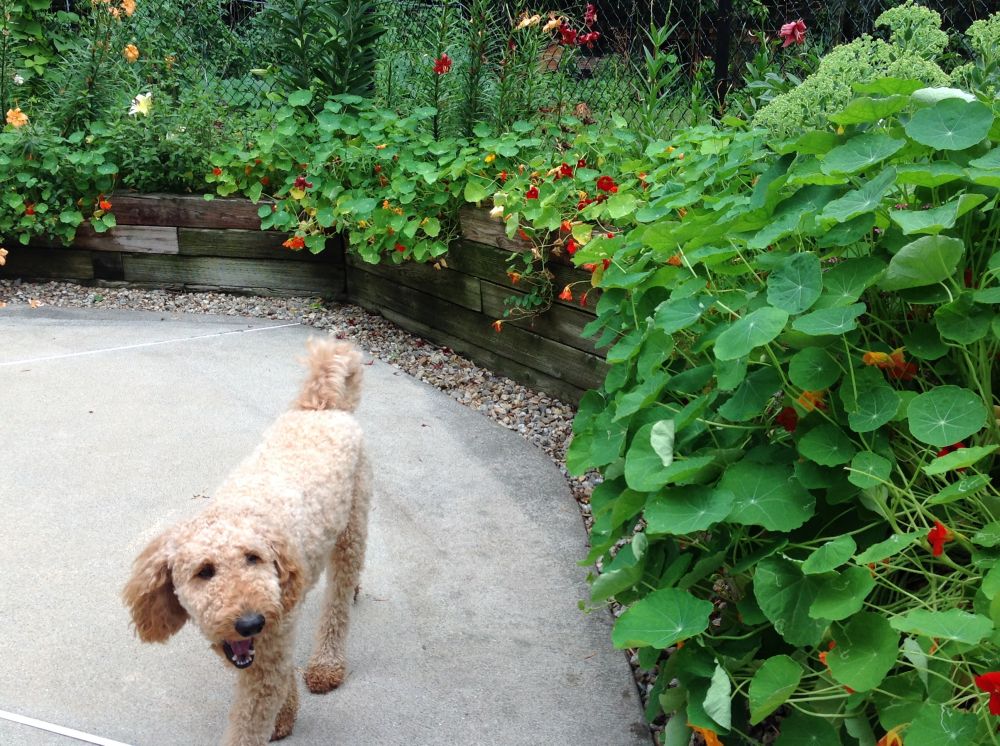 要干活了!每天都要巡逻妈妈的花园,看有没有可恶的侵略者和小偷来破坏妈妈的花花和菜菜。其实俺很想逮住个兔子松鼠玩玩的。俺当然能闻出他们的味儿来,隔着八百里俺都能闻到,只是他们的洞俺进不去!