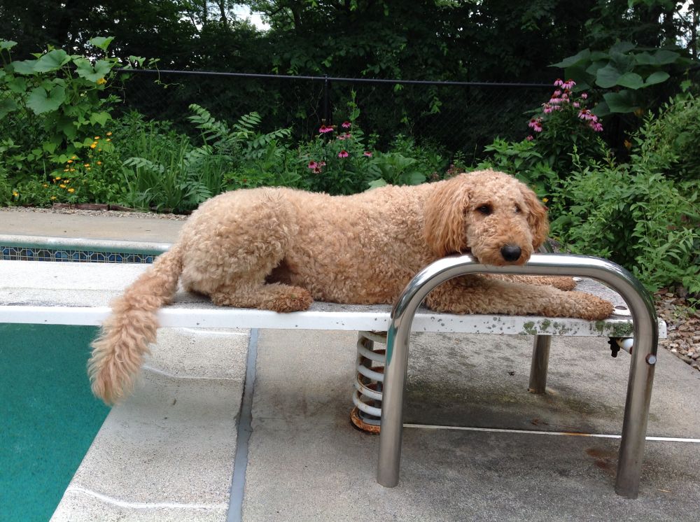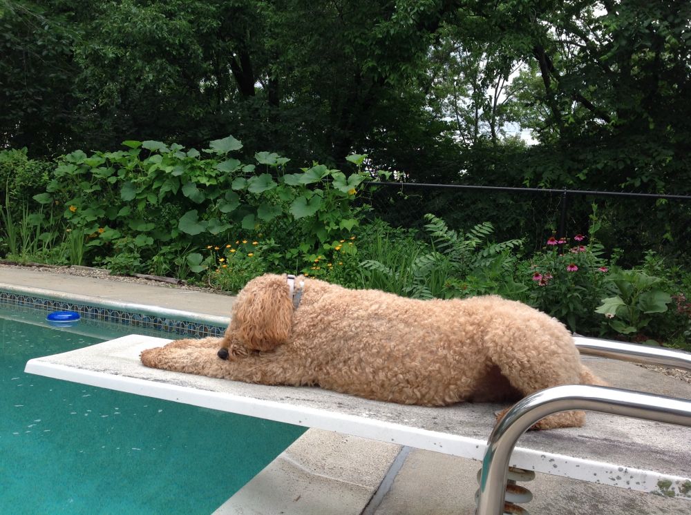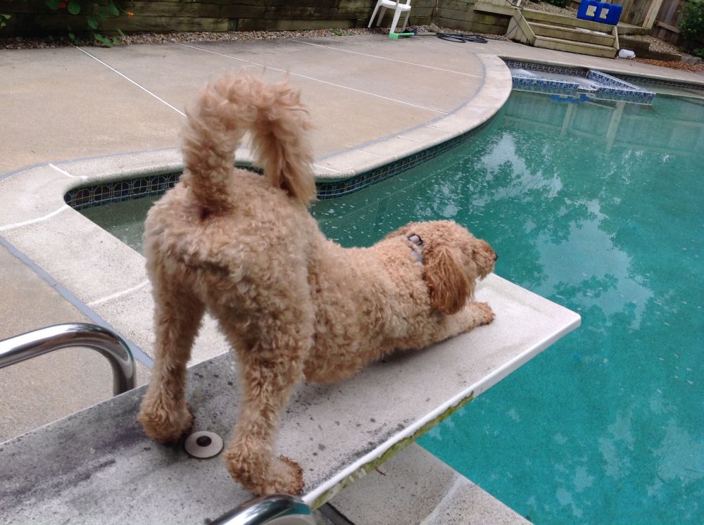 啥?以为俺要跳水?嘿嘿,俺尾巴在那个方向不表示俺害怕游泳啊!其实俺才不怕游泳,就是不喜欢落水狗的形象。