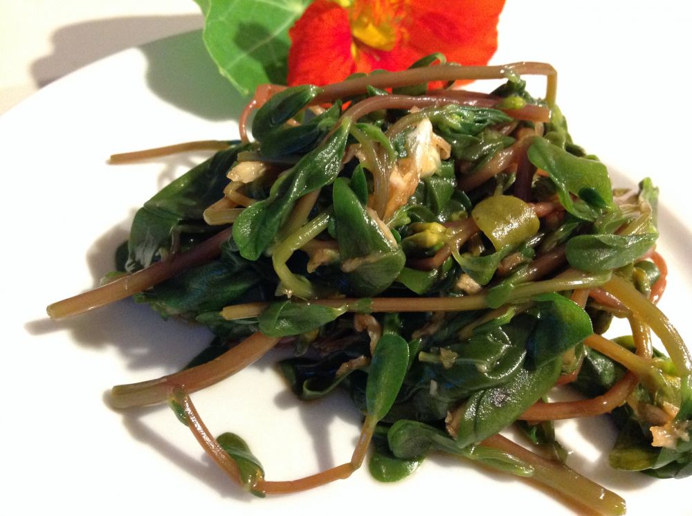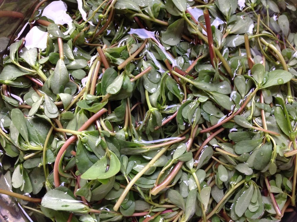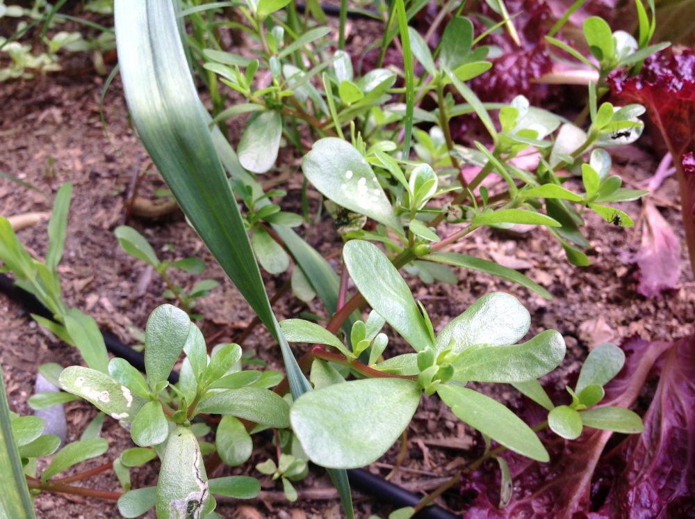 在菜地里拔草,看到刻意留下的野菜马齿苋已经郁郁葱葱。