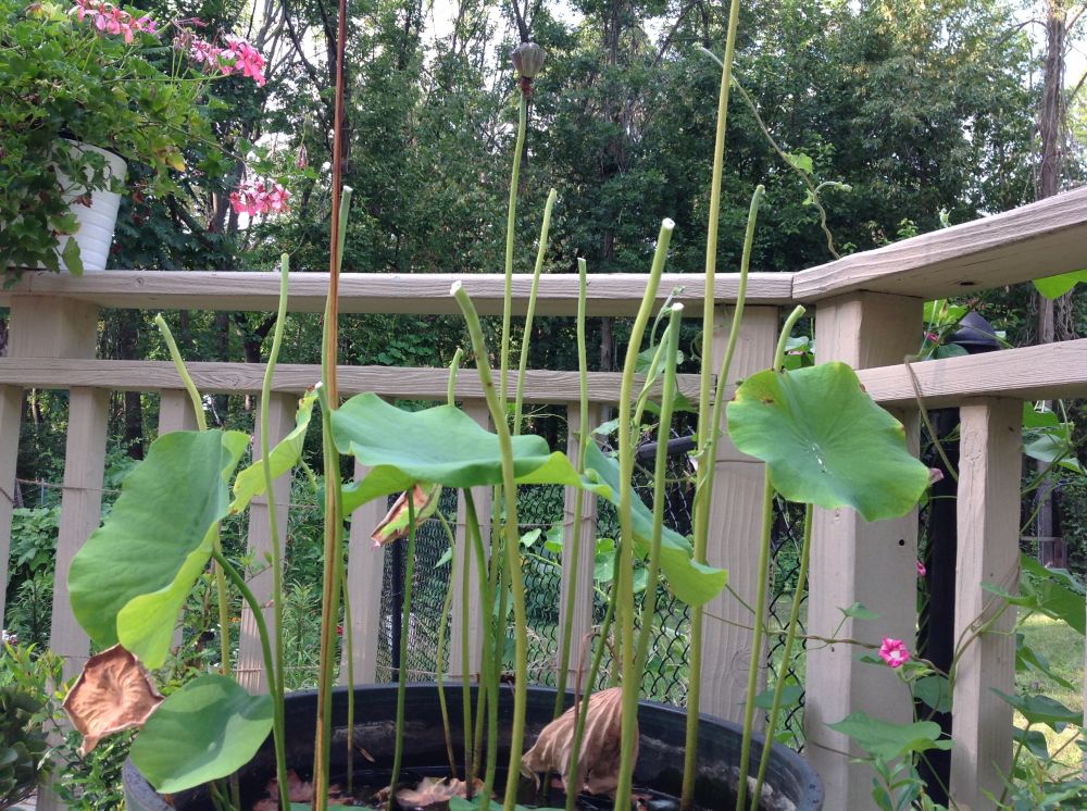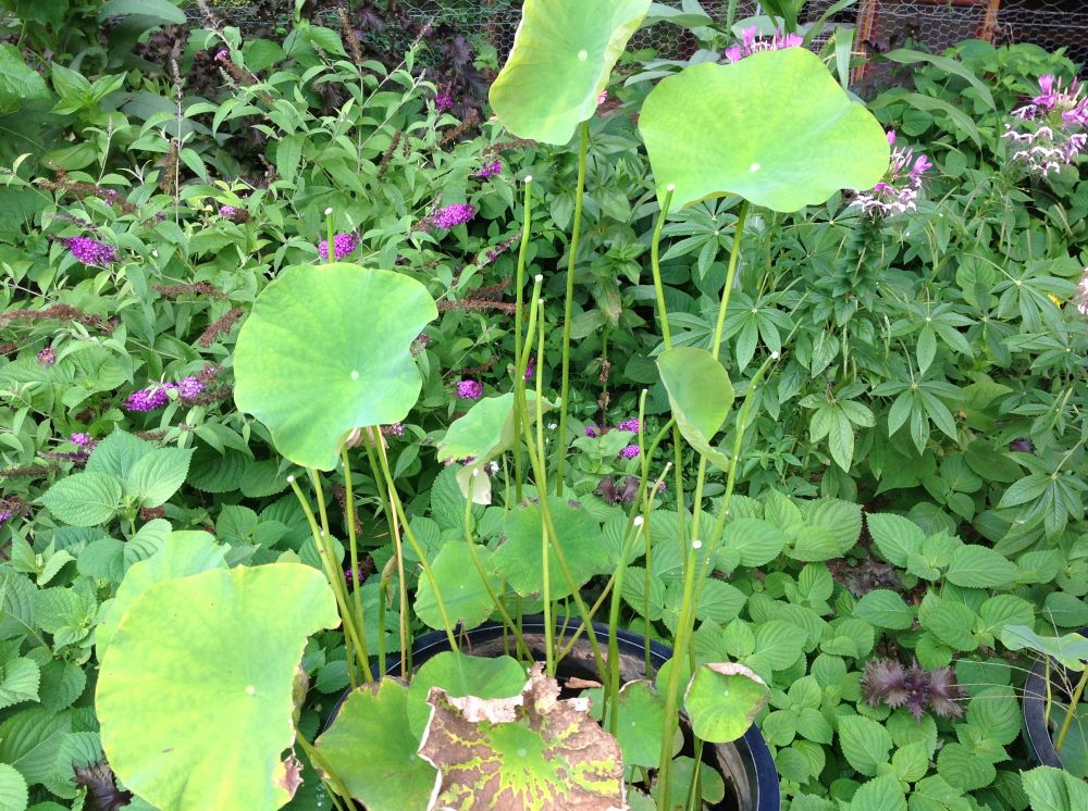 嘿嘿,采了荷叶后有些不堪忍睹!不过俺想荷是宁愿进厨房里待着也不想等着生命枯萎的。当然,俺那盆还有花苞的没有剪叶子,还留着拍照显摆呢。