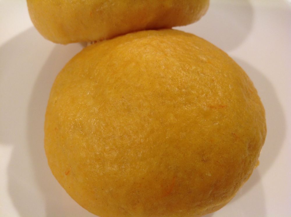 有时候也来点儿主食。自己种的南瓜,去瓤蒸熟,去皮打碎,加面粉和酵母和糖适量,用南瓜自带的水分和面。低温慢速发酵的纤维更好吃。一部分放了豆沙馅,一部分没有放馅。这样的馒头我这个不怎么吃主食的也会忍不住吞下一个。