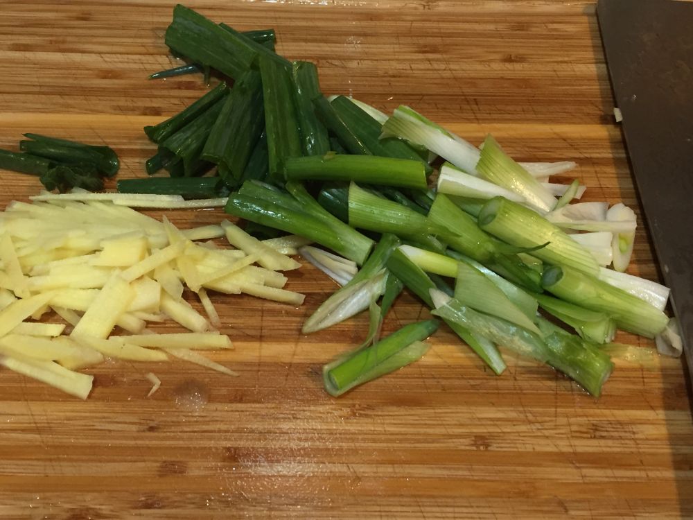 混合调料:1 teaspoon 耗油,1 tablespoon 酱油,1 teaspoon 糖,3/4 cup 料酒,1/2 teaspoon盐