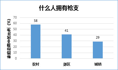 接下来,美国农村家庭拥有枪支的比例为58%。也就是,接近三分之二的农村家庭拥有枪支。郊区家庭拥枪比例为41%,而城镇家庭的比例则为29%。