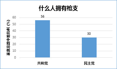 如果以党派来划分的话,共和党家庭拥枪比例为56%,而民主党的比例则为30%。