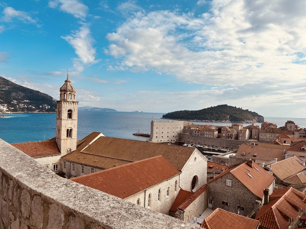 沿着墙上步道前行,走过米尼切塔堡(Minceta Tower),它依旧巍然矗立,仿佛仍在守望着城池的安宁。蹬上塔顶,放眼望去,脚下是错落有致的红瓦房顶,房顶下是年代已久的楼房,而楼房空隙处大多种了各种植物,其中最多的是橘子树。海风轻拂,树叶发出莎莎声,在宁静中加添一份活力。而远方,则是辽阔无垠的亚得里亚海,湛蓝的海面映衬着天空的微光,波涛轻轻拍打着城墙下的礁石,低吟着一首千年的海洋诗篇。