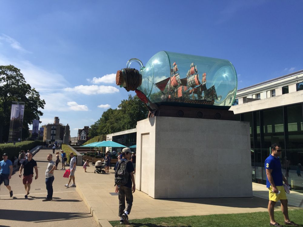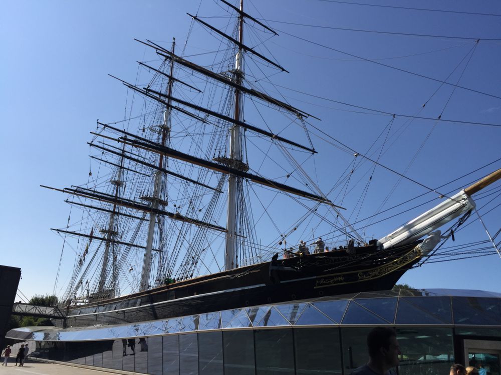 到了格林威治,跟着人群走,先去看了CUTTY SARK,英国17世纪一艘据说最快的运货的帆船,后来随着机动船的出现,这艘船慢慢被淘汰了,就在这里做展览了。上船参观要另外交钱,我们照了两张相,就转悠到旁边的old royal naval college了。这里有一个painted hall值得去看看,可以爬上楼梯看屋顶上绘画,以前在罗马看了太多的绘画,我们对它不太感冒,在旁边的小教堂Chapel of st Peter and st Paul看了一下就直奔大路旁的海事博物馆。