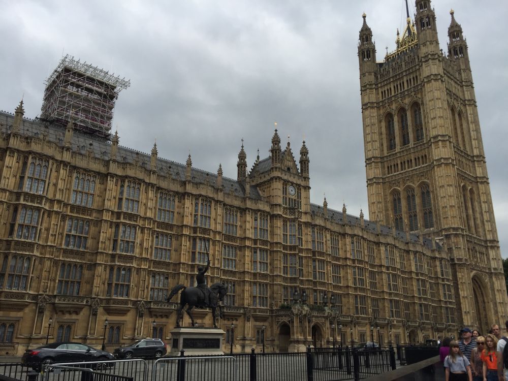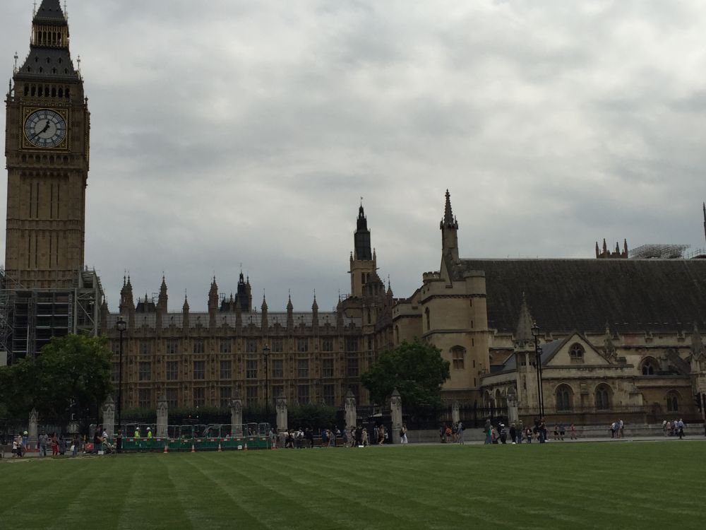出了westerminster地铁站,就看到街对面的大笨钟和议会大厦。伦敦在哪里都是人潮涌动,不用看地图,顺着人群先到了议会广场,广场上有一些著名人物的雕像,丘吉尔,曼德拉,westerminster大教堂正面用围栏围着,围栏外照相和过往的人很多,进里面的人好像并不多,揣着2合一的COUPON,不想在售票处被拦下,COUPON有一小字我没注意看原来COUPON夏季旅游高峰期不能用,要9月以后,想着9月还有时间,本着省点钱的原则,决定过几天再来。于是溜达到旁边的议会大厦,富丽堂皇,在正门前照了几张相,但发现每张照片里的大厦都是斜的,有几张斜得厉害,跟个比萨斜塔似的,百思不得其解。