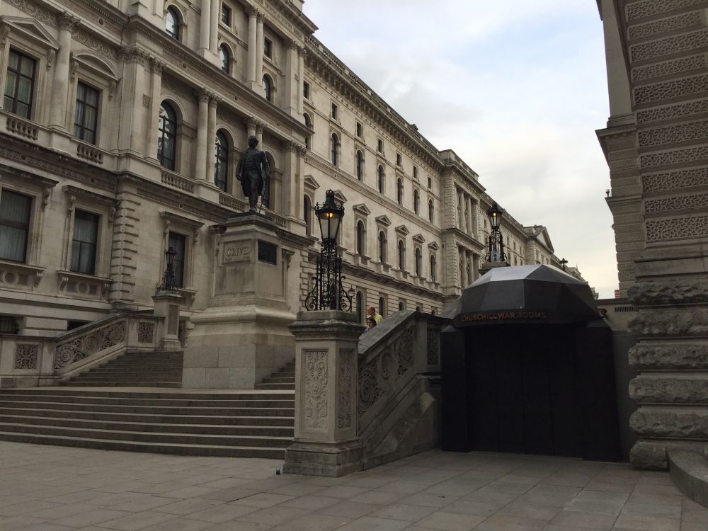 顺着街往北一路上都是英国的政府大楼,道宁街10号大铁门紧闭,门口有警察站岗,门外是探头探脑的游客,我们本打算去CHURCHILLWAR ROOM,结果走过了,一直走到了HORSE GUARD,女王的马厩,穿过HORSE GUARD,在ST。JAMES公园吃了自带三明治,算是PICNIC,往回走一点到了CHURCHILL WAR ROOM,入口很小很不起眼,顺着狭窄的楼梯,我们仿佛来到了另一个世界,据说丘吉尔和他的将领们在这里生活了五年直到二战结束,在这里他们召开军事会议,研究作战方案,他们在这里睡觉,吃饭,二战结束,人们撤出,里面原物保留供后人参观缅怀,英国人民不会忘记这段历史和他们的民族英雄。里面还有丘吉尔博物馆,记录了丘吉尔的生平事迹,点点滴滴,生平所有信件都收集在这里,没想到丘吉尔年轻时还被捕入狱过,后来自己越狱成功,颇具传奇色彩。