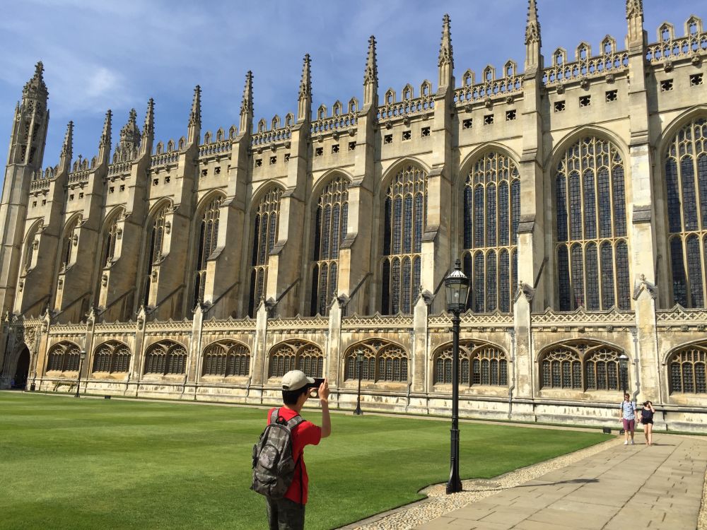 查了下天气预报,又是一个艳阳天,决定去剑桥。去剑桥很方便,直接到KING CROSS车站买火车票坐1个小时火车就到了。剑桥火车站到剑桥大学要走25-30分钟或坐BUS。在剑桥下的人很多,挤在熙熙攘攘的人群里大家的目的地都是一样的,不用担心找不到地方,跟着人群走就行了。沿着狭长的街道,走进了古色古香的剑桥。
