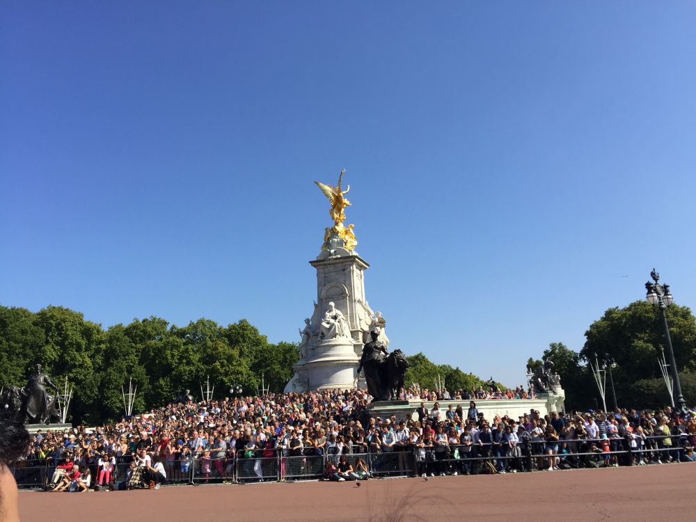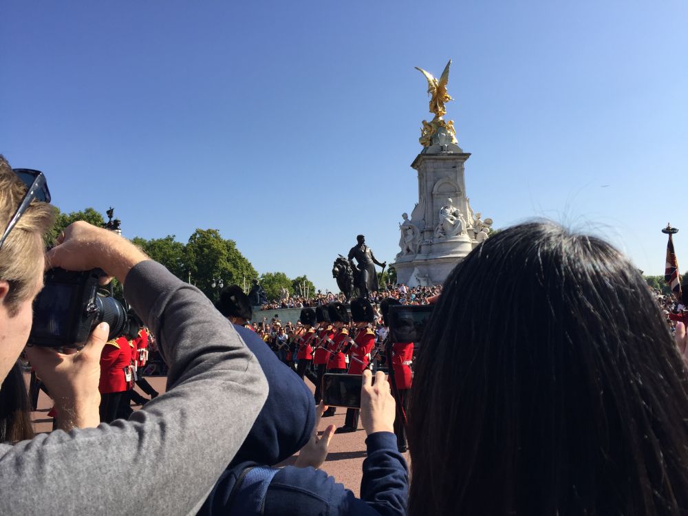 白金汉宫看换岗仪式就像天安门前看升旗仪式,成为伦敦的必看项目。广场上早就挤满了慕名的人群,我们来晚了,挤在人群里几乎看不到什么。
