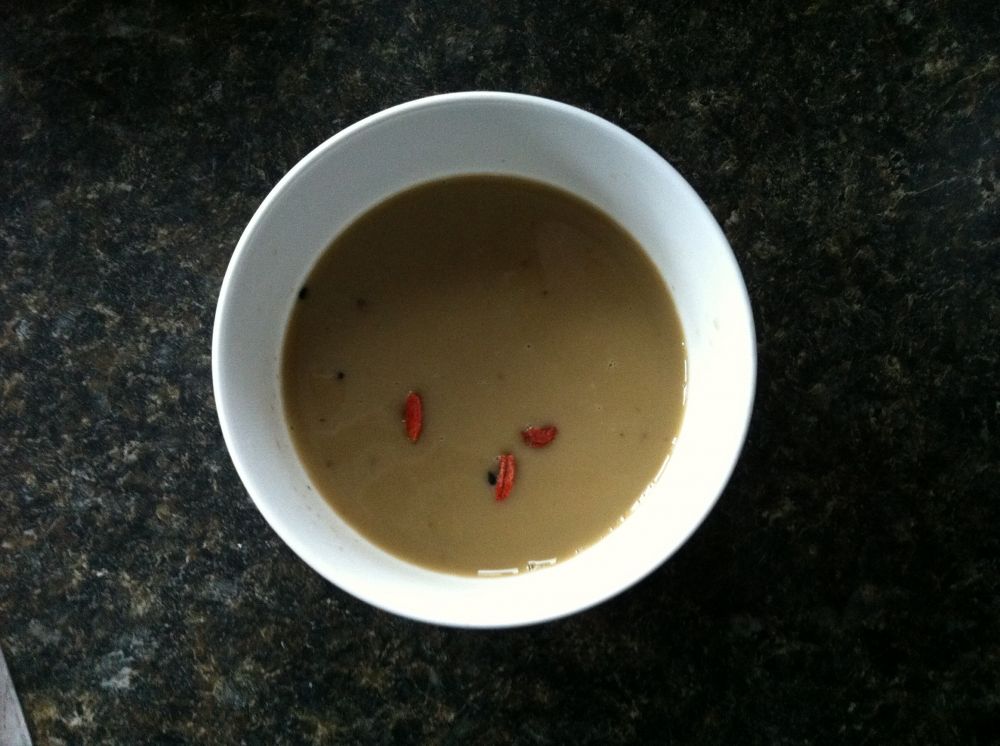 一勺阿胶糕,一个鸡蛋,加半个蛋壳的凉开水,打散,放三粒枸杞。