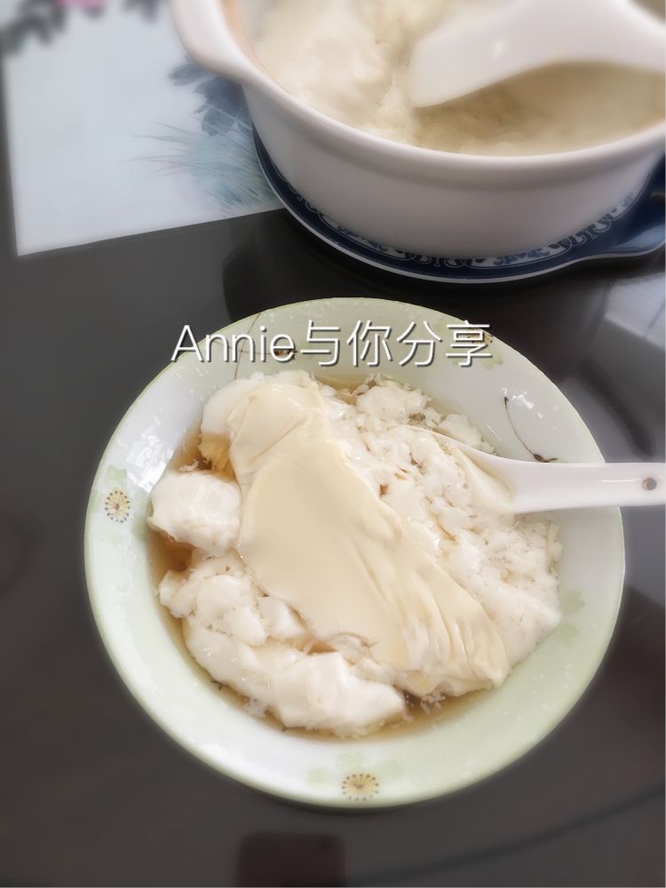 广东福建南方吃甜豆腐花,这碗加了姜糖汁,夏天吃凉的,冷天吃热的,润喉下火。
