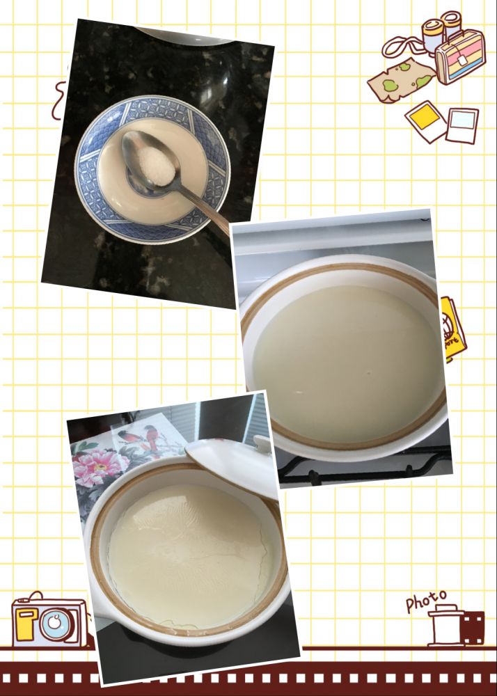 从上到下是2克内酯,3杯豆浆,点好的豆腐脑,吃剩的放冰箱,过两天成嫩豆腐了。