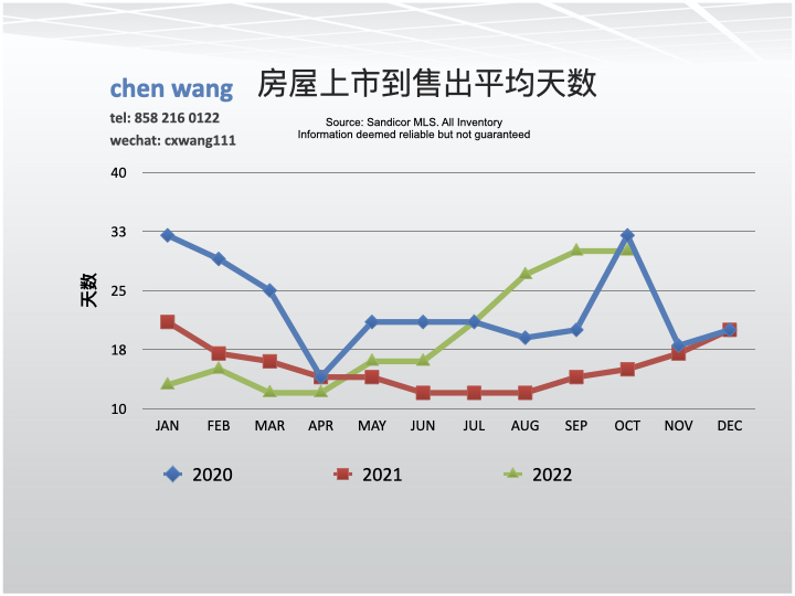 从上市到售出的平均(mean)时间10月份为30天,和9月份(30天)持平;与去年同期(15天)相比大幅度上升,100%。