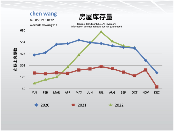 房屋库存量10月份为400套。与9月份(512)相比下降了4.3%。与去年同期(190)相比大幅度升高,157.9%。
