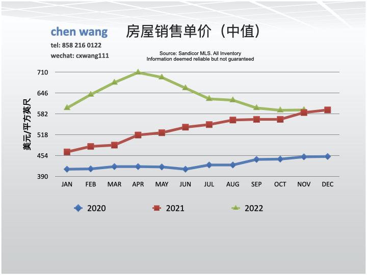 11月份每平方英尺的价格(单价)为594美元。与10月份(593美元)相比上升了0.2%;与去年同期(586美元)相比升高了1.4%。