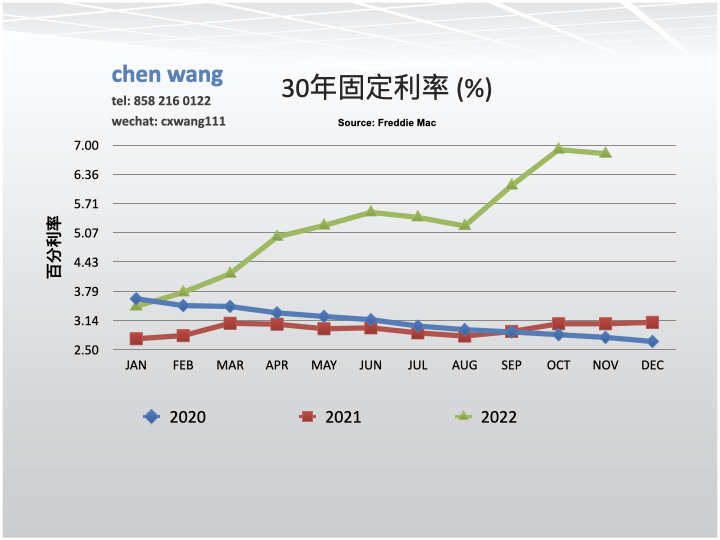 11月份30年贷款利率为6.81%,与10月份(6.90%)相比降低了1.30%;与去年同期(3.97%)相比上升了71.54%。