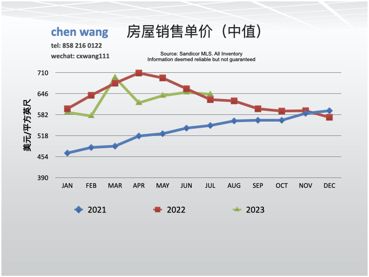 7/2023每平方英尺的价格(单价)为644美元。与6月份(650美元)相比下降了0.9%;与去年同期(628美元)上升了2.6%。