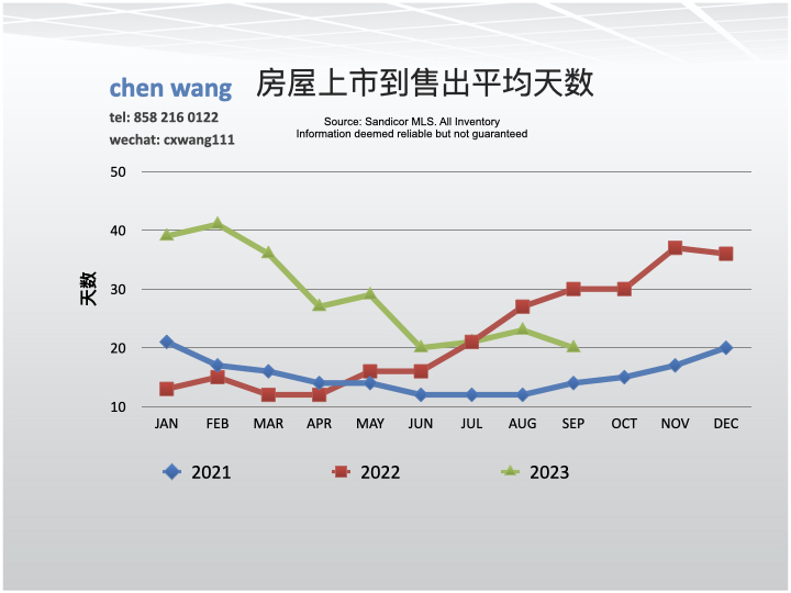 9/2023从上市到售出的平均(mean)时间为20天,与8月(23天)相比下降了13%;与去年同期(30天)相比下降了33.3%。