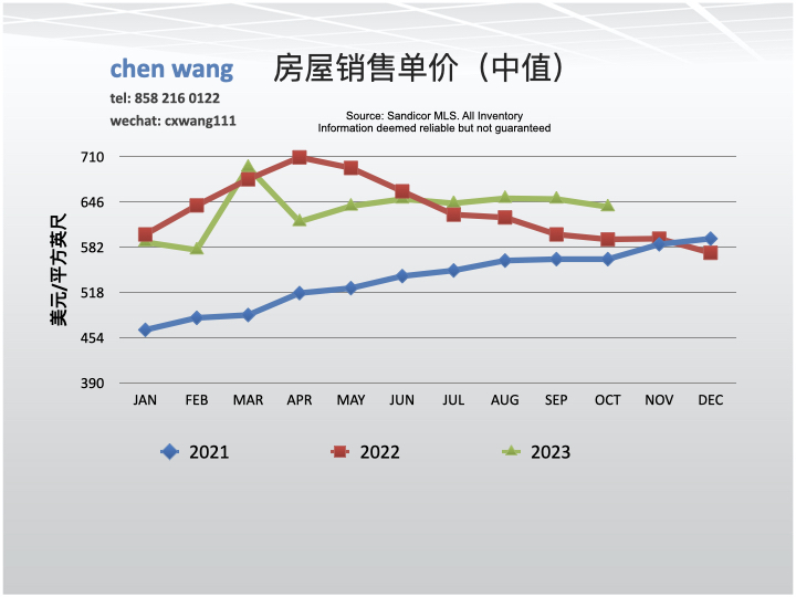 10/2023每平方英尺的价格(单价)为639美元。与9月份(650美元)相比降低了了1.7%;与去年同期(593美元)相比上升了7.8%。