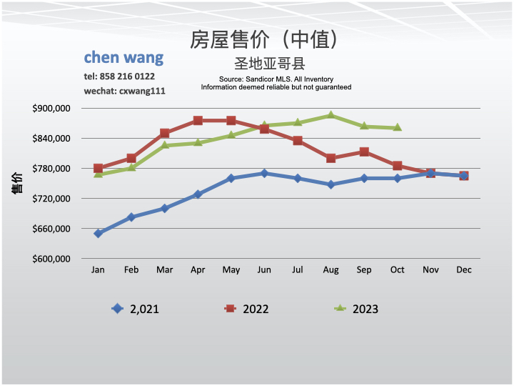 10/2023圣地亚哥县销售房屋数量为1,702套,销售价格中值为860,000美元。与9月份(863,000美元)相比下降了0.4%;与去年同期(785,000美元)相比上升了9.5%。