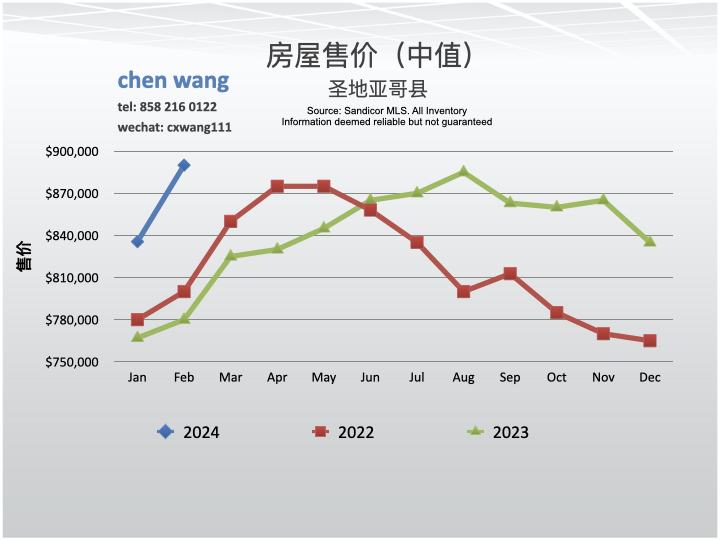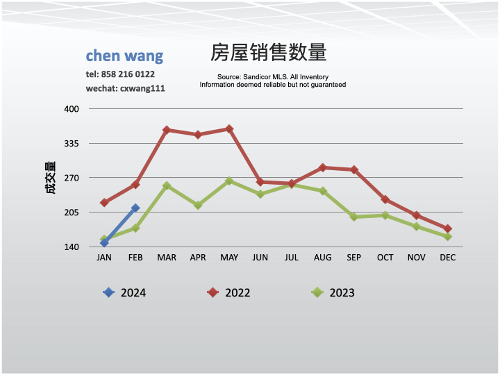 圣地亚哥市北部地区房地产市场数据分析:与1月份相比,2024年2月份房屋销售价格略有下降,3.0%。然而,与去年同期相比升高了10.3%。2月份房屋销售数量比1月份有大幅度提高。